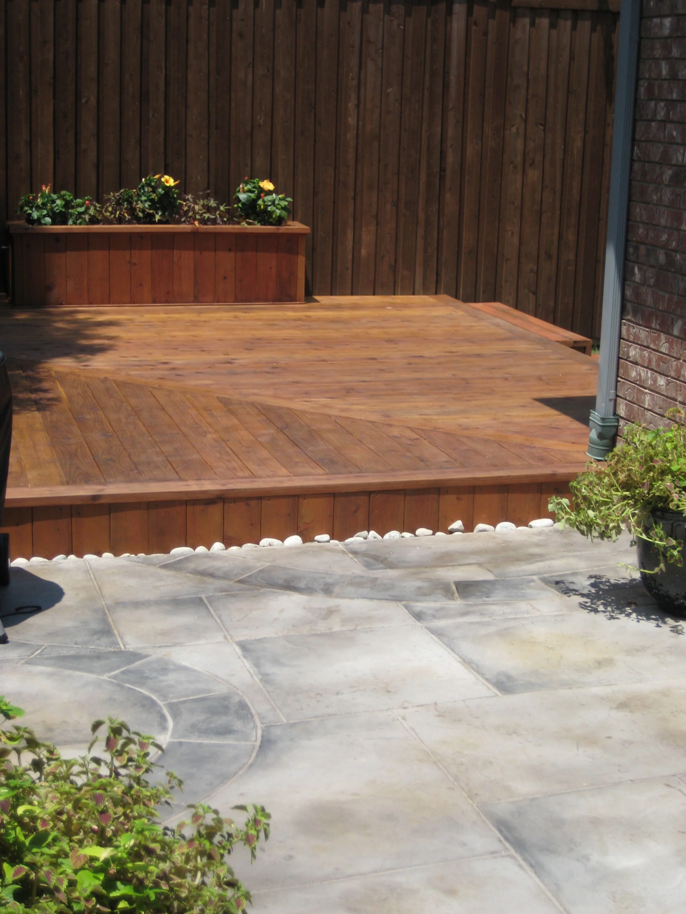 A zero lot home with a hot dry corner got a custom redwood deck, hand troweled concrete deck and major love all around the house. The most overlooked part about a zero lot or small lot home is to pay attention to the views from the inside. We create custom landscaped vignettes for every viewpoint from the inside utilizing decorative trees like Japanese Maples and native grasses.